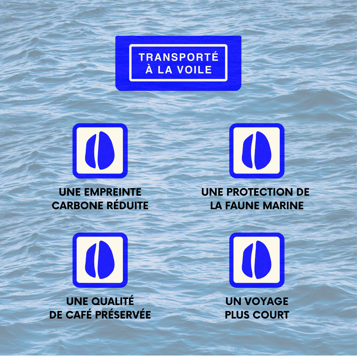 Ce café est importé à la voile par TOWT et BELCO. Il bénéficie du label FCCO : Fresh Coffee, Clean Ocean. Il arrive jusqu’à vous par un transport maritime décarboné, réduisant son empreinte carbone de 70 à 90 % par rapport au fret conventionnel, tout en préservant les océans : sans fuel lourd, avec une pollution sonore quasi nulle.